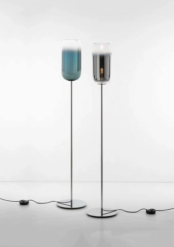 Artemiden Gople-lattiavalaisin tuo tilaan tunnelmallista valoa, joka siivilöityy näyttävän, liukuvärjätyn lasivarjostimen läpi. Alumiinisen jalustan päällä seisova, vanhalla venetsialaisella tekniikalla toteutettu liukuvärjätty lasipinta on käsityötä, joten jokainen valaisin on täysin uniikki. Gople-valaisinsarjan on suunnitellut Bjarke Ingels Group.