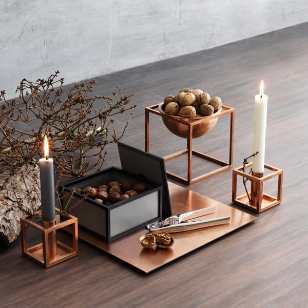 Kubus-kynttilänjalan on suunnitellut tanskalainen arkkitehti ja muotoilija Mogens Lassen. Funktionalistinen ja matemaattisen tarkasti suunniteltu geometrinen Kubus on saanut muotonsa vuonna 1962, kun Bauhausin suunnitteluperiaatteista inspiroitunut Mogens Lassen halusi kapinoida rönsyilevää koristeellisuutta vastaan. Tuloksena syntyi terävälinjainen, nopan muotoinen teräsrunko, johon kynttilänpidikkeet on asetettu tarkasti harkiten. Ajan saatossa Kubus on noussut yhdeksi tanskalaisen muotoilun klassikoksi.