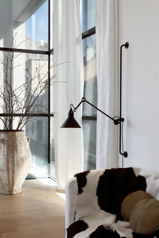 Lampe Gras 214 -seinävalaisin kuuluu Bernard-Albin Grasin suunnittelemaan ikoniseen Lampe Gras -valaisinsarjaan, jonka ranskalainen DCWéditionss on julkaissut uudelleen. Teräksinen Lampe Gras 214 on varustettu seinään kiinnitettävällä tangolla, säädettävällä varrella ja kartionmuotoisella varjostimella. Varjostimen sisäpinta on lämpimän kuparin sävyinen.