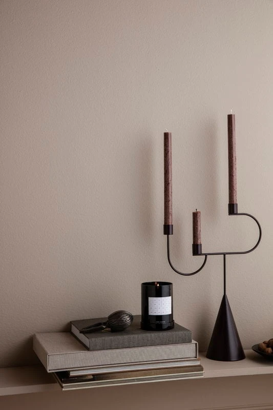 ferm LIVINGin Avant-kynttelikön epäsymmetrinen, tunnistettava ilme kiinnittää takuulla katseen. Modernista muotokielestään huolimatta Avant-kynttelikössä on helppo nähdä viittauksia myös menneiden aikojen designiin. Kynttelikkö on valmistettu jauhemaalatusta metallista ja viimeistelty pehmeän mattaiseksi.