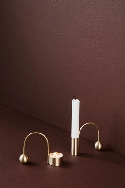 ferm LIVINGin Balance on pelkistetty ja moderni kynttilänjalka, joka seisoo geometristen muotojen muodostamassa tasapainossa. Mattakiillotetusta messingistä valmistettu kynttilälyhty on veistoksellinen valontuoja kodin sisustukseen.