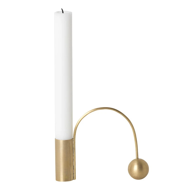 ferm LIVINGin Balance on pelkistetty ja moderni kynttilänjalka, joka seisoo geometristen muotojen muodostamassa tasapainossa. Mattakiillotetusta messingistä valmistettu kynttilänjalka on veistoksellinen valontuoja kodin sisustukseen.