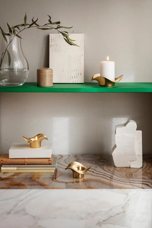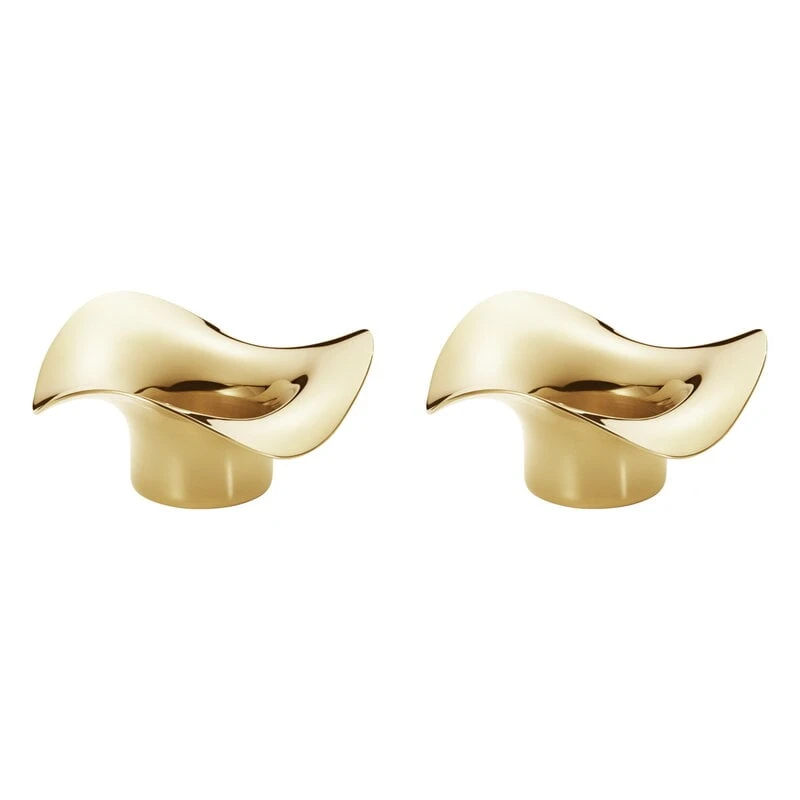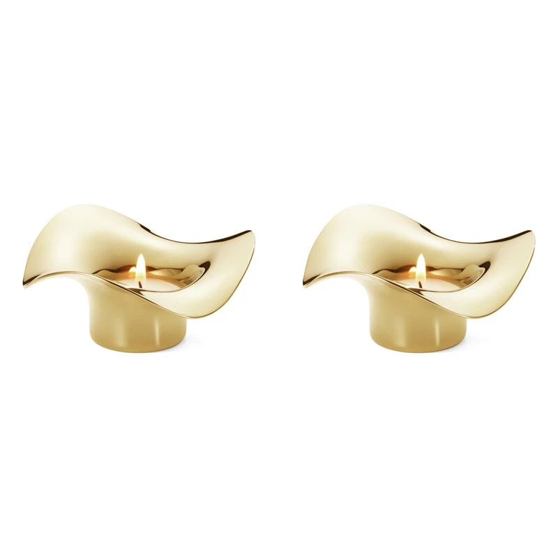 Georg Jensenin Cobra-kynttilälyhty kääntää katseet kullansävyisen metallipinnan loistolla, joka peilaa liekkien hehkua viehättävällä tavalla. Cobra-lyhdyn muoto on saanut inspiraationsa sulavasta vahasta – kurvit ovat niin orgaanisia, että voisi kuvitella perinteisen kynttilänjalan alkaneen valua. Pakkaus sisältää kaksi kynttilälyhtyä.
