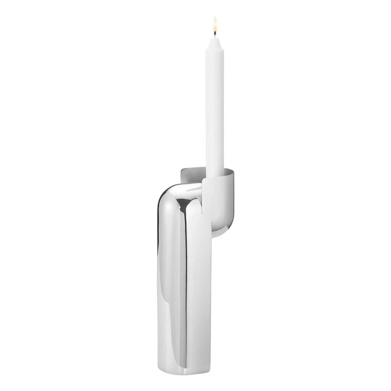 Nendo-kynttilänjalka kerää katseita omaperäisellä ja veistoksellisella ulkonäöllään. Japanilaismuotoilija Oki Sato on saanut inspiraation viehättävän kynttilänpidikkeen muotokieleen luonnosta ja sieltä löytyvistä pehmeistä kaarevista linjoista. Iso kynttilänjalka on valmistettu tyylikkäästä ja kestävästä ruostumattomasta teräksestä, joka on kiillotettu peilaavan hopeiseksi – peilipinta on suorastaan viettelevä yhdistelmä liekkien eloisaa hehkua vasten. Nendo-kynttilänpidike on kaunis koriste-esine yksinään, mutta yhdistyy myös hurmaaviksi asetelmiksi Nendo-sarjan muiden kynttilänjalkojen sekä maljakoiden kanssa.