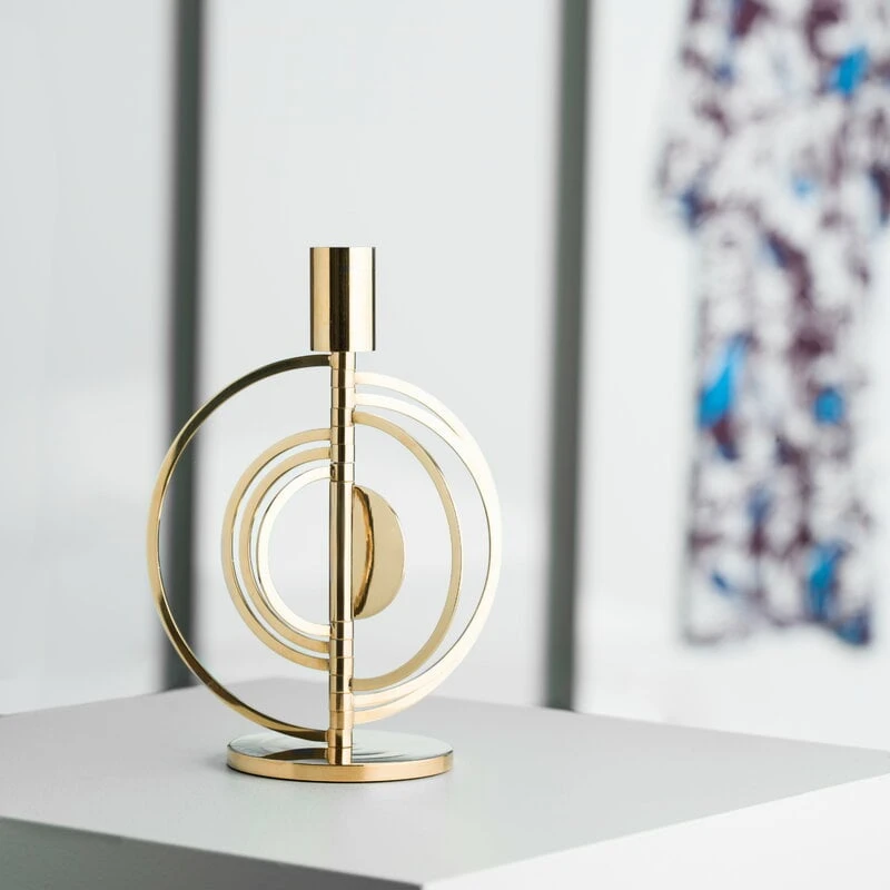 Klongin Cirkus-kynttilänjalka on leikkisän klassinen sisustuselementti, joka koostuu kiehtovista, liikkuvista puoliympyrän osista. Messingistä valmistettu geometrinen ja pyöreälinjainen kynttilänjalka muuntuu hauskasti kääntämällä puoliympyrän kaaria eri suuntiin, jolloin sen ilmeeseen saa helposti vaihtelevuutta. Cirkus-kynttilänjalan on suunnitellut ruotsalainen Eva Schildt.