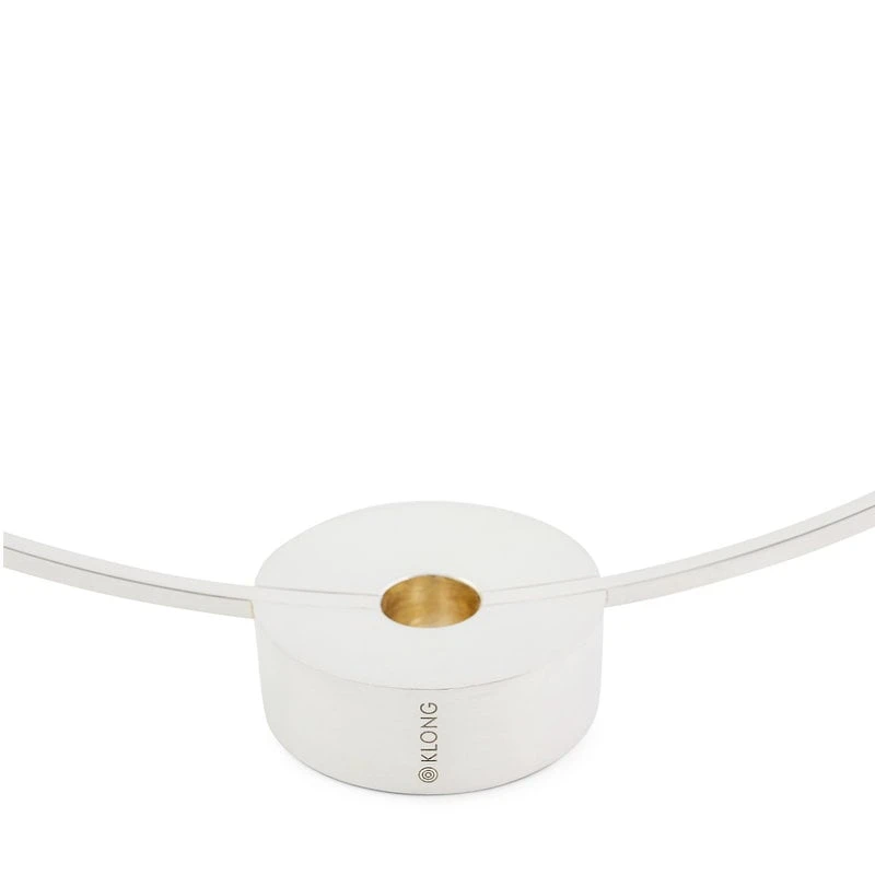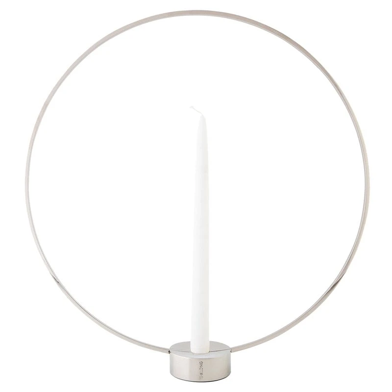 Klongin Gloria-kynttilänjalka rakentuu pienestä lieriömäisestä jalustasta ja sirosta haloa muistuttavasta metallikehästä, joka kehystää kynttilän ja hehkuu viehättävällä tavalla sen valossa. Hopean väriseksi nikkelöidystä messingistä valmistetun käyttöesineen on suunnitellut ruotsalainen Broberg & Ridderstråle.