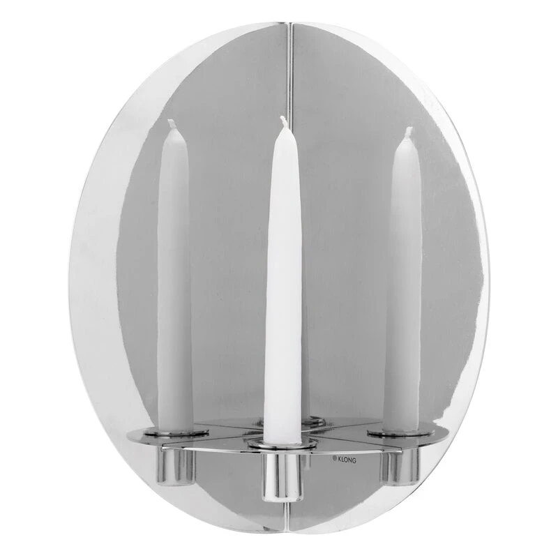 Klongin Twilight on seinään kiinnitettävä kynttilänjalka, joka leikkii oivallisesti valojen heijastuksilla ja muotojen moniulotteisuudella. Teräksestä valmistettu kynttilänjalka voidaan asettaa niin nurkkaan kuin tasaiselle seinälle ja se toimii kynttilänjalan lisäksi myös pienenä maljakkona. Viehättävän Twilight-kynttilänjalan on suunnitellut muotoilija Margarita Matiz Bergfeldt.
