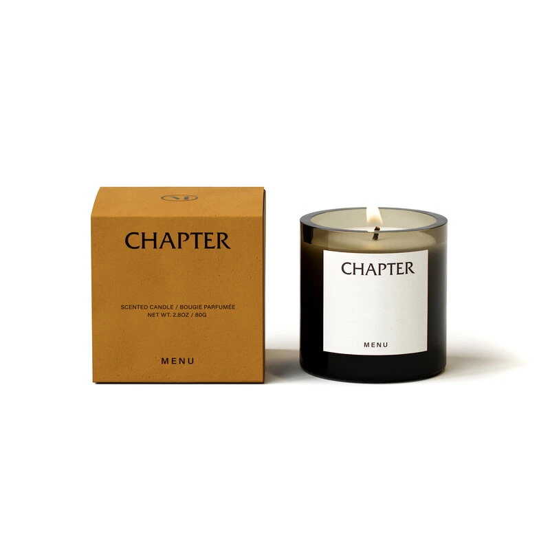 Olfacte-kynttiläsarjan Chapter-tuoksu on tasapainoinen tuoksukokonaisuus, jossa ovat aistittavissa japanilaisen Hinoki-puun, sitruunan ja kardemumman tuoksut. Päätuoksun alta erottuvat setripuun, patsoulin, meripihkan ja myskin hennot tuulahdukset.