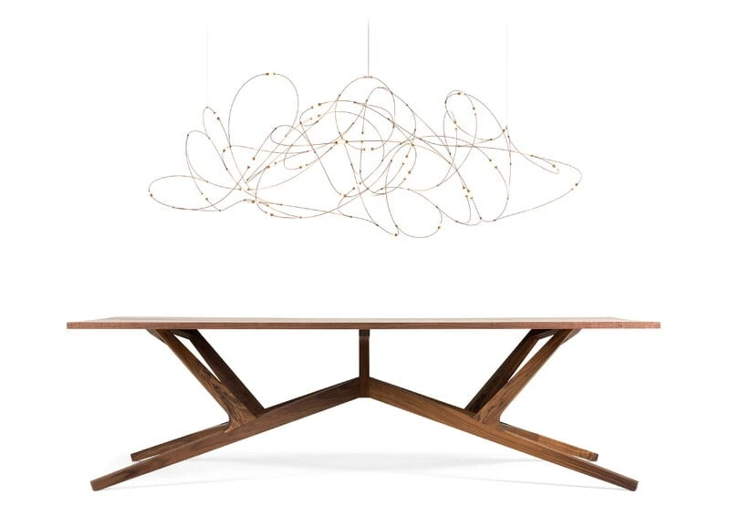Moooin Flock of Light -riippuvalaisin tuo huoneeseen taianomaista valoa, jonka innoittajana on toiminut päivän ja yön välinen hämärän hetki. Pienistä LED-valoista ja vapaasti kiertyvästä pronssi- ja messinkilangasta muodostuva Flock of Light on kuin ilmassa leijuva valoveistos, jonka muodossa voi nähdä iltahämärän tähtitaivaan tai aamun ensimmäisten auringonsäteiden valaiseman pilven.