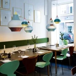 Bubi-valaisin hurmaa niin yksittäisenä sisustuksen helmenä kuin useamman valaisimen näyttävässä rivissä tai rykelmässä. Siro valaisin on kaunis miten päin tahansa, ja sen voi ripustaa kattoon korkealle tai matalammalle, vaikkapa sohvapöydän ylle. Bubi-riippuvalaisimen tunnistettava muoto tekee siitä myös yllättävän funktionaalisen: metallinen yläosa ja sen ulkoneva reuna mahdollistavat valaisimen kääntämisen ylösalaisin ja sen asettamisen vaikkapa kirjahyllyyn pöytävalaisimeksi!