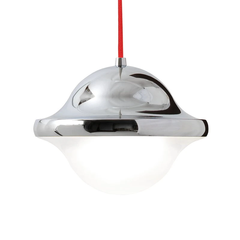Pandulin Bubi-riippuvalaisimen muoto on kiehtovan monitulkintainen – yksi näkee siinä tammenterhon, toinen avaruusaluksen, kolmannen mielestä se on päivänselvästi hyrrä. Valaisimen on suunnitellut Henning Koppel, joka tunnetaan erityisesti hopeisten, sulavalinjaisten korujen, astioiden ja kellojen suunnittelijana. Bubin pehmeästi virtaavat, harkitut linjat tuovatkin eittämättä mieleen myös kaulassa roikkuvan riipuksen.