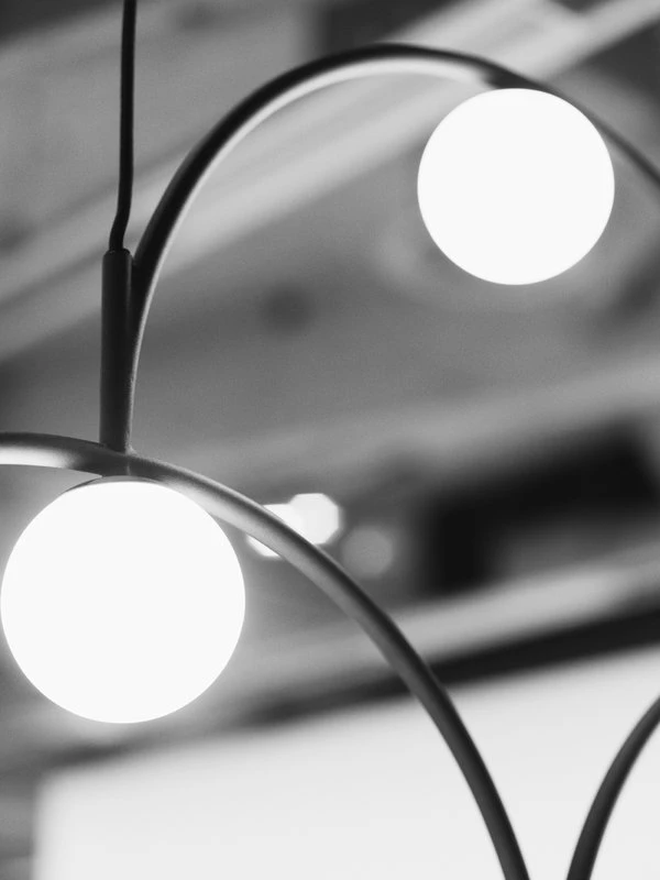 Monika Mulder kertoo Bounce-valaisimen muotoilusta: ”Halusin luoda valaisimen, joka tuo tilaan persoonallisuutta ja valoa. Valaisimelle luomani graafisen ilmeen keskiössä on polku, jota pitkin sähkövirta kulkee lamppujen välillä.”