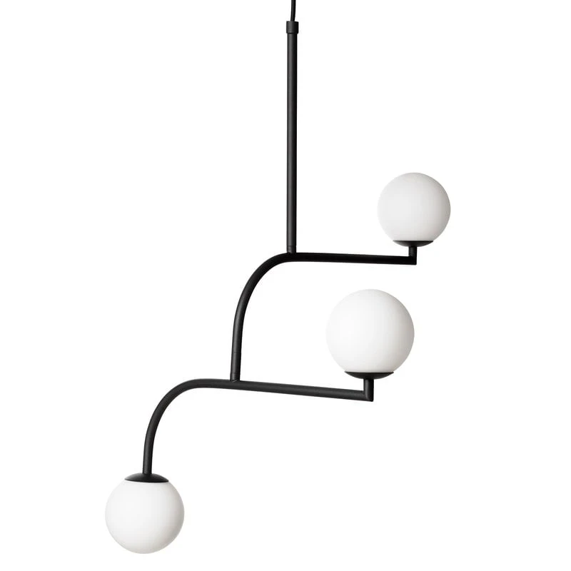 Pholcin Mobil 70 -riippuvalaisin rakentuu kolmesta opaalilasikuvusta ja kahdesta identtisestä metallikaaresta, jotka on mahdollista kääntää haluttuun asentoon. Elegantti valaisin on saatavilla kolmessa värissä, ja sen kaunis mobilemainen muoto kiinnittää katseen niin olohuoneessa kuin ruokapöydän yllä.