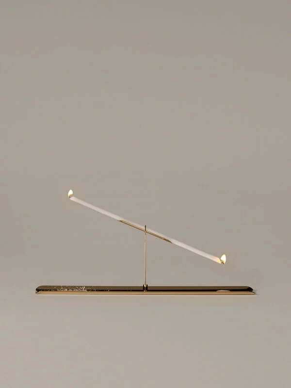 Santa & Colen Vita Balanza -kynttilänjalka antaa mahdollisuuden polttaa kynttilää molemmista päistä samalla kuitenkin rauhasta ja kauneudesta nauttien. Marre Moerelin suunnittelema, vuonna 2022 julkaistu Vita Balanza kuvaa ei enempää eikä vähempää kuin elämää itseään, joka hakee jatkuvaa tasapainoa puolelta toiselle tanssien. Kiiltävä, kullanvärinen metallirakenne ja tippakouru antavat juhlavat puitteet kynttilänjalan keskelle kiinnitettävälle ohuelle kynttilälle, jonka liekkien lämpö vauhdittaa keinuvaan liikkeeseen.
