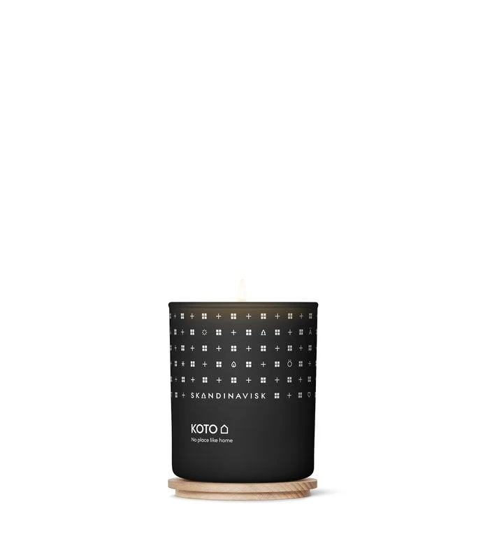 Skandinaviskin Koto-tuoksukynttilässä voi aistia vaniljan, appelsiininkuoren ja meripihkan aromeja sekä vanhojen nahkahuonekalujen lempeän tuoksun. Koto-tuoksusta välittyy kotoisa tunnelma sekä lämpö ja turva, jota koti tarjoaa erityisesti pohjoisten alueiden tuulissa ja tuiskuissa.