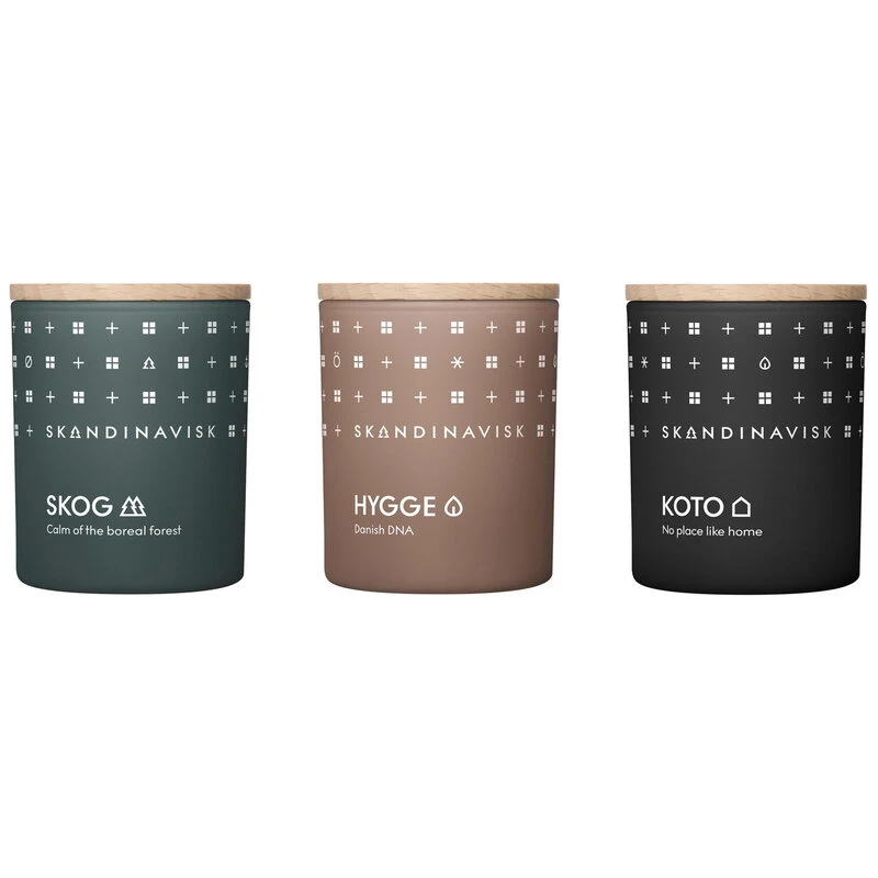 Skandinaviskin tuoksukynttilät tuovat kotiin uniikkeja Skandinavian luonnon, vuodenaikojen, kaupunkien ja perinteiden inspiroimia tuoksuja. Kynttilät on valettu kauniisti kuvioituihin konepestäviin lasiastioihin, joita voi käyttää uudelleen kynttilälyhtyinä tai lasipurkkeina. Kynttilävaha on valmistettu ruotsalaisesta GMO-vapaasta rapsiöljystä, jonka ansiosta se palaa puhtaasti ja tasaisesti. Skandinaviskin tuoksukynttilät ovat toivottuja sisustusesineitä, jotka miellyttävät useita aisteja.