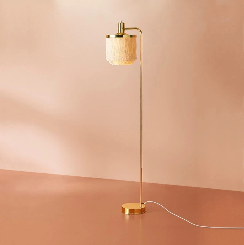 Fringe-valaisimen elegantti olemus muodostuu messingin ylellisestä hohdosta ja kermanvalkoisista hapsuista, joiden väleistä valo siivilöityy pehmeästi luoden ympärilleen lempeän ja miellyttävän valaistuksen. Fringe täydentää upeasti vintage-henkistä, romanttista sisustusta nojatuolin tai sohvan viereen asetettuna, mutta sopii mainiosti myös modernimpaan tyyliin tuomaan sisustukseen ripauksen leikkisää eleganssia.